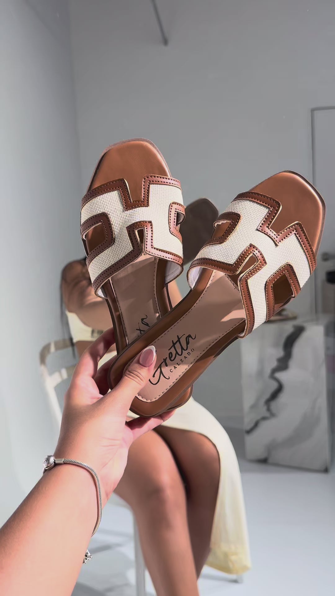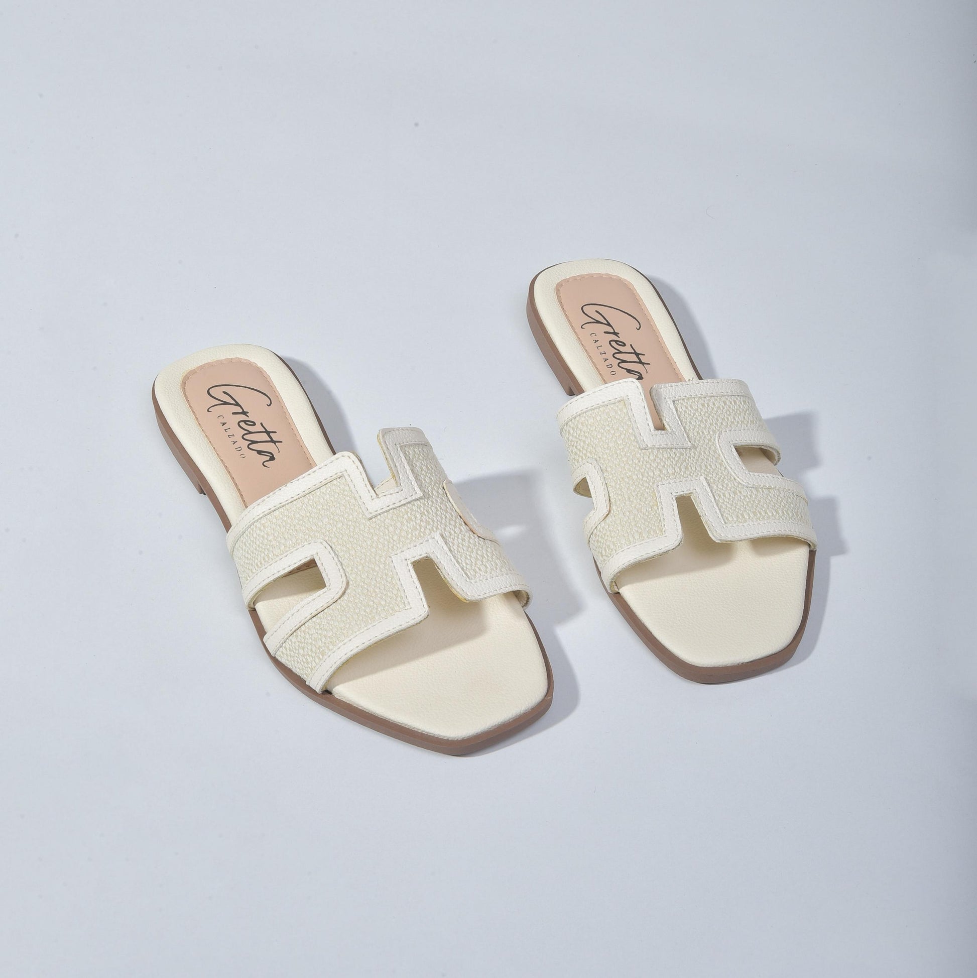 Sandalia tipo H en material sintético trenzado premium con forro suave. Suela ligera de 2 cm y acabado antideslizante. Un básico sofisticado que eleva cualquier look de día o de noche.