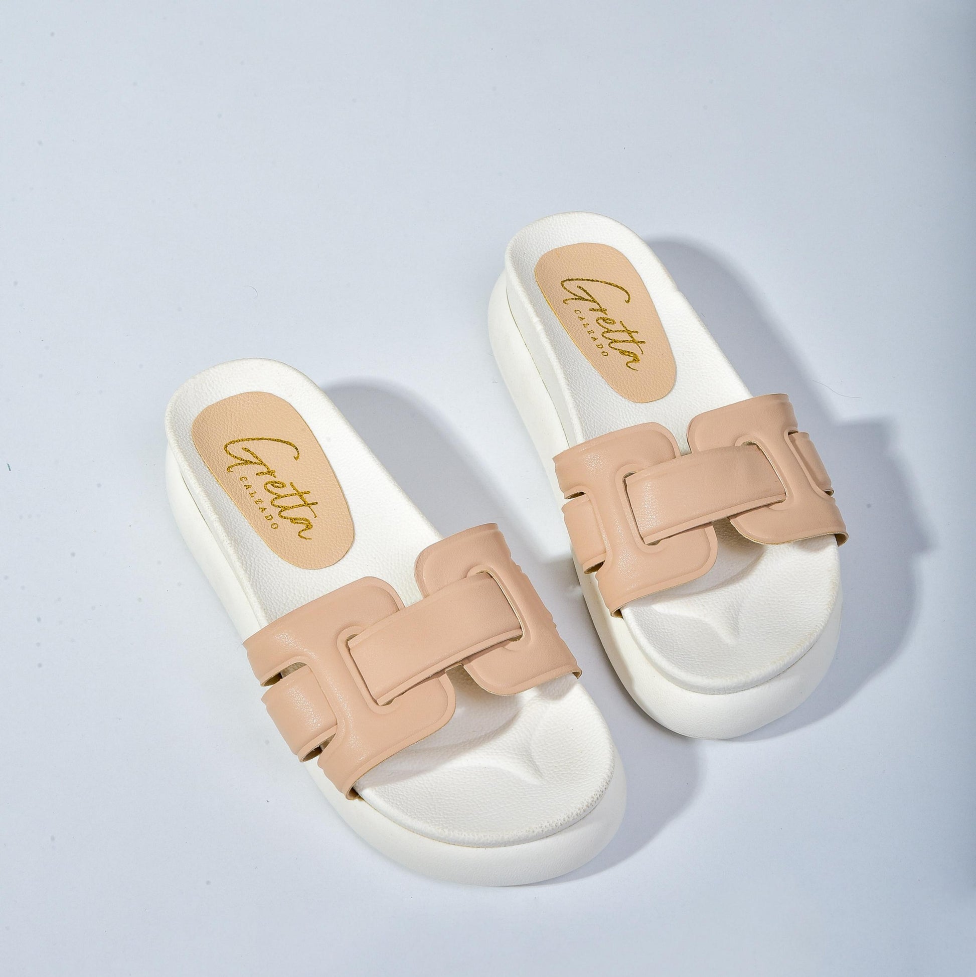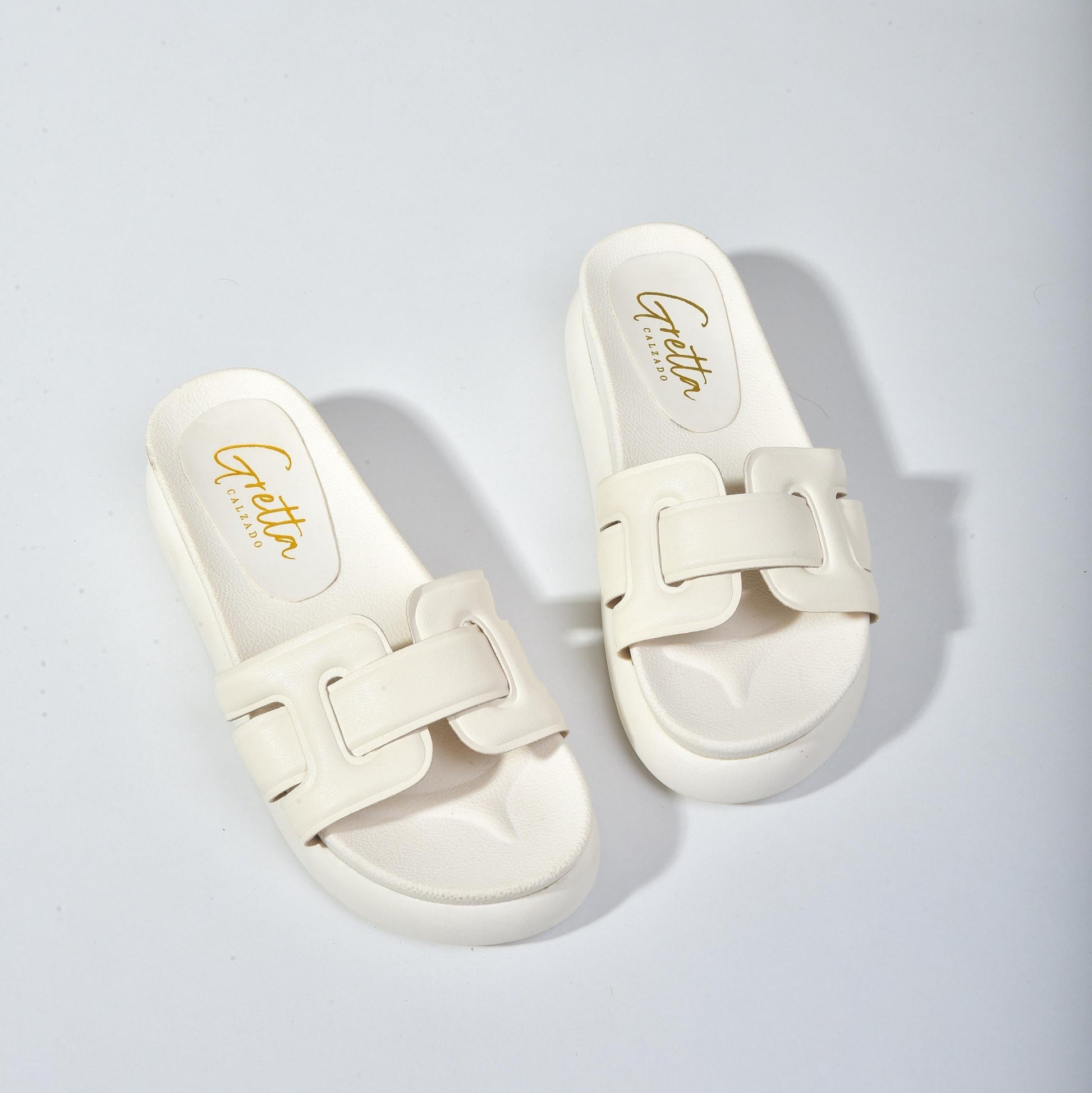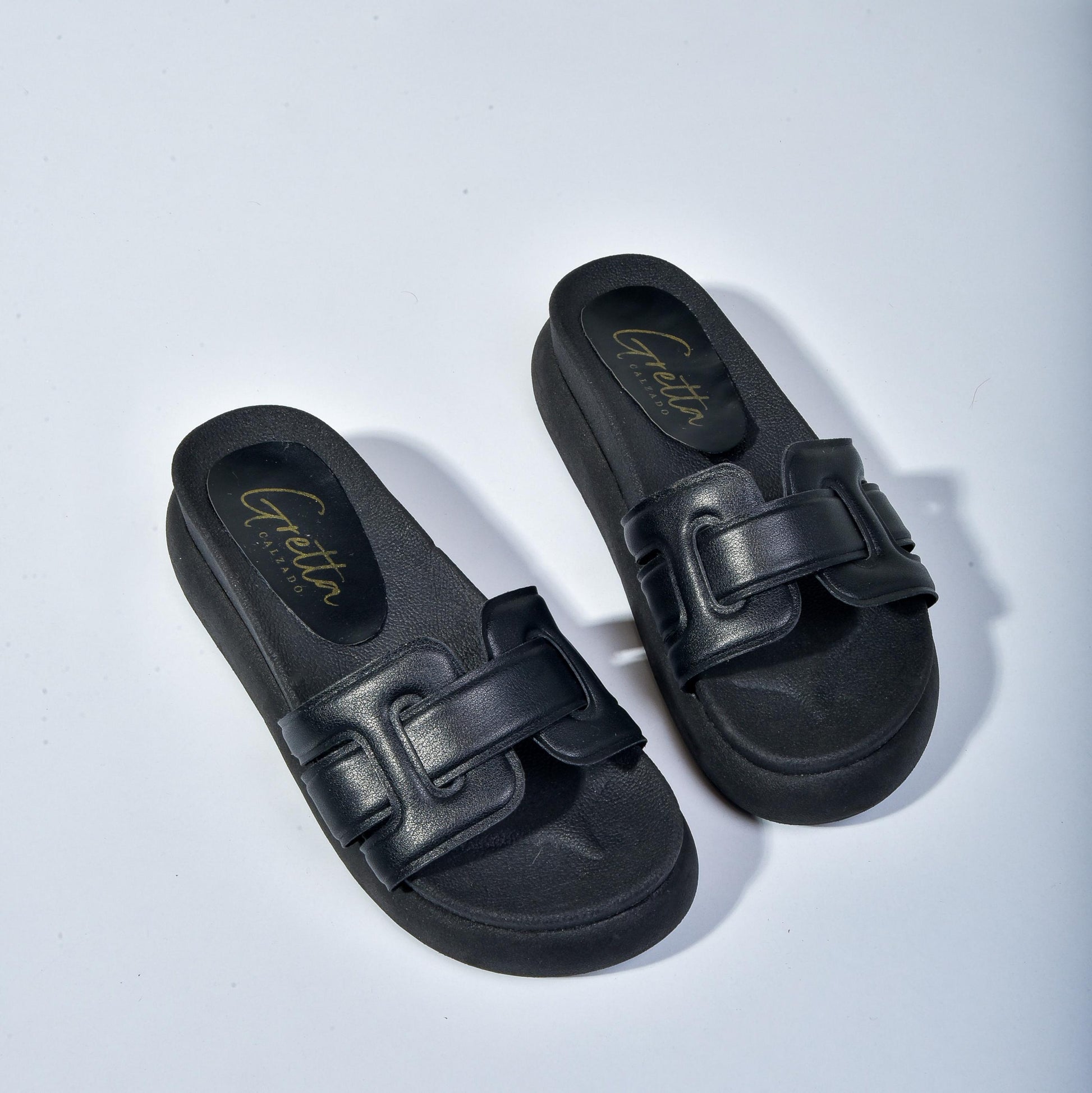 Sandalia tipo slide en material sintético suave con detalle de hebilla. Suela ligera de 4.5 cm con plantilla acolchada que brinda comodidad en cada paso. Diseño minimalista y versátil para looks casuales y frescos.